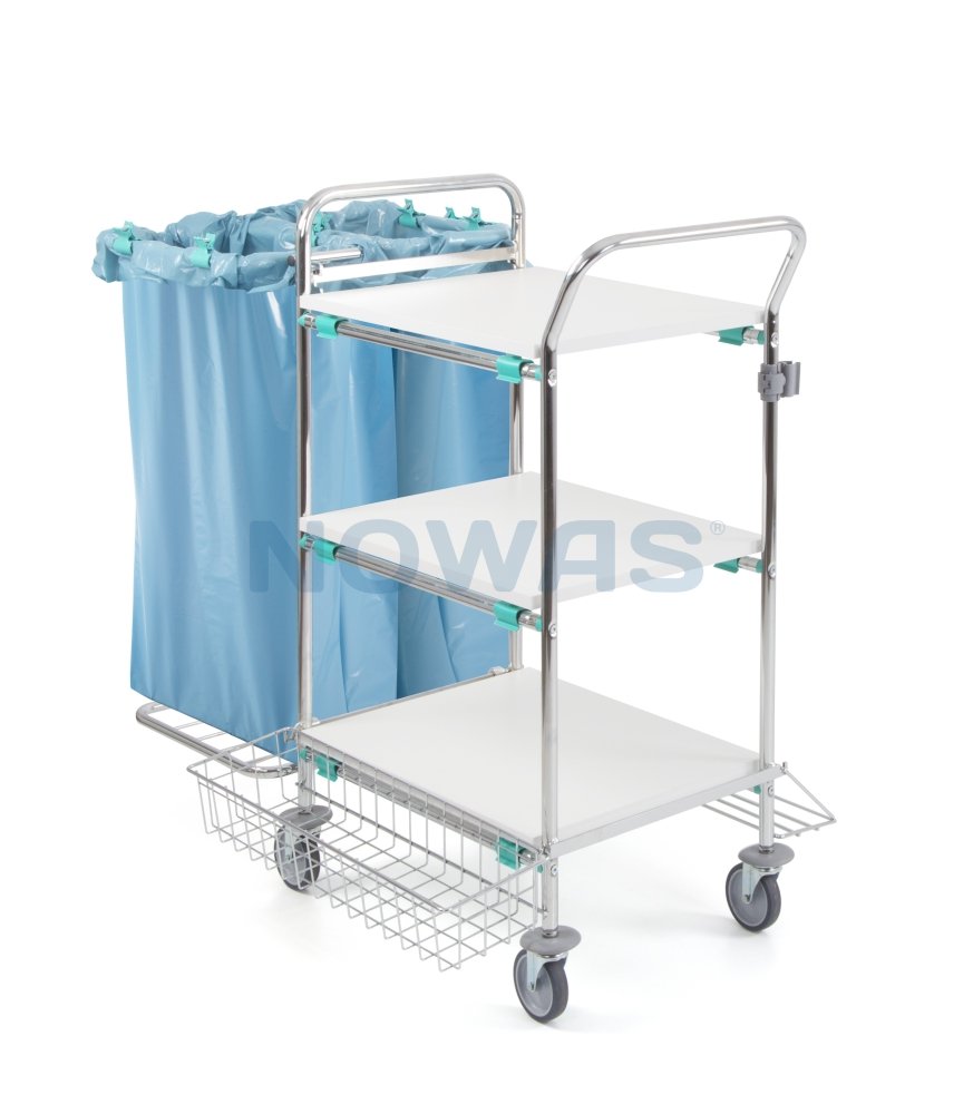 Multifunktionel forkromet vogn med polypropylenkomponenter.