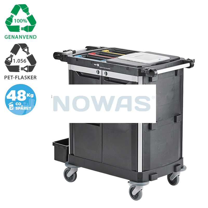 Miljøbevidst, stilren og brugervenlig rengøringsvogn i eksklusiv designlinje. Solid vogn med en bæreevne på 300 kg. Kører ubesværet over gulvet. Ergonomisk vogn med 180° justerbart kørehåndtag. Konstruktion af aluminium og 2-lags plast med en levetid på +10 år. Fleksibel rengøringsvogn, kan ombygges efter behov. Få eget logo og design på vognens ene side.