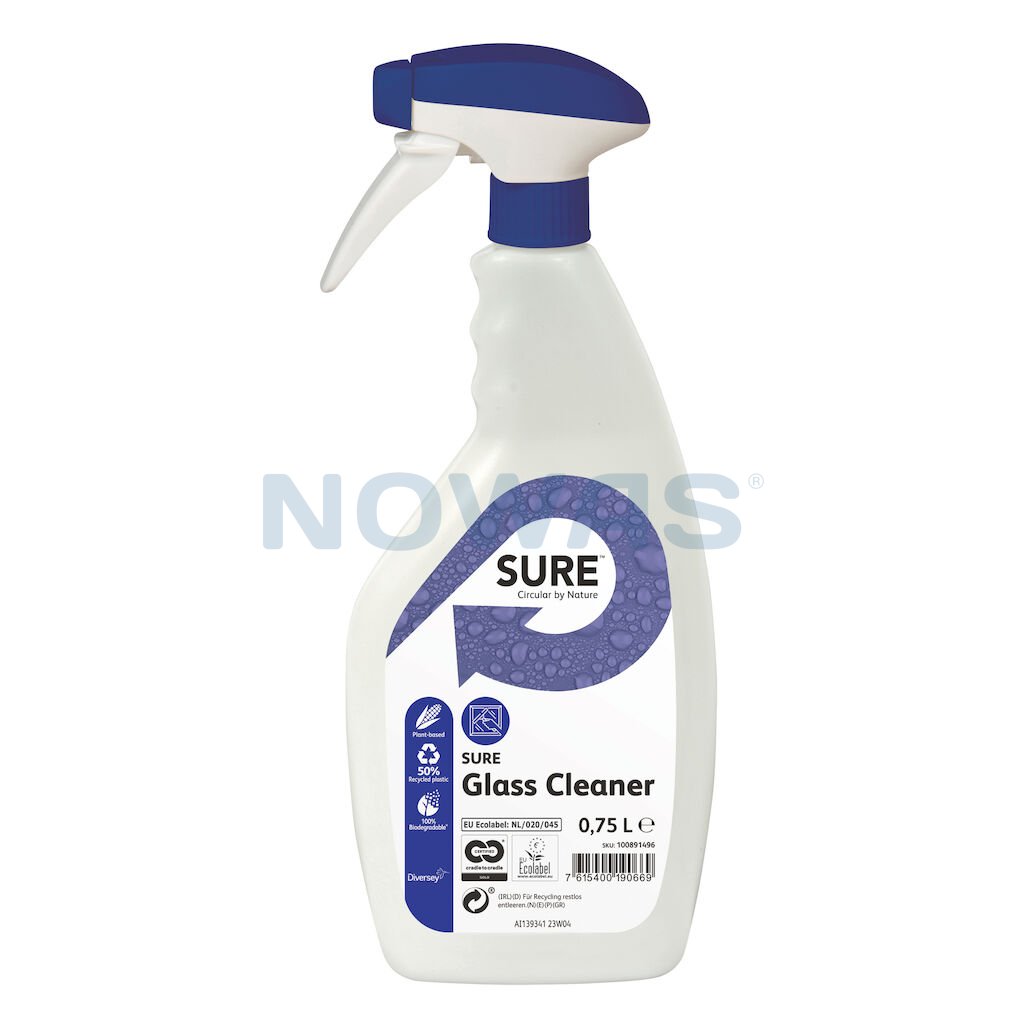 Diversey glasrens 100% Klar-til-brug, Sure glasrens er også en 100% plantebaseret glasrens uden parfume og farve. Med sure glasrens opnår du et stribefrit resultat hver gang. Sure glasrens er en mere miljøvenlig løsning til rengøring af glas, det friskduftende rengøringsmiddel tørrer hurtigt og efterlader et flot resultat uden striber. Sure serien er både egnet til effektivitet og respekt for miljø og sundhed.