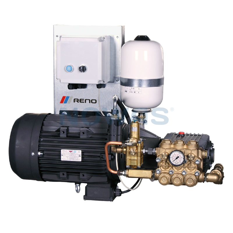 Effektiv stationær koldtvandsrenser fra RENO til indendørs installation, særligt velegnet til større installationer. Den stationære economic højtryksrenser er designet som en dimensionerbar løsning, der kan tilpasses dit behov. Det er også muligt at koble flere højtryksrensere sammen til en stor installation. Denne ST.200/30 højtryksrenser fra RENO har keramiske stempler og leveres med automatisk start/stop samt slange, pistol og dobbelt strålerør.