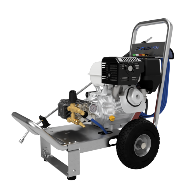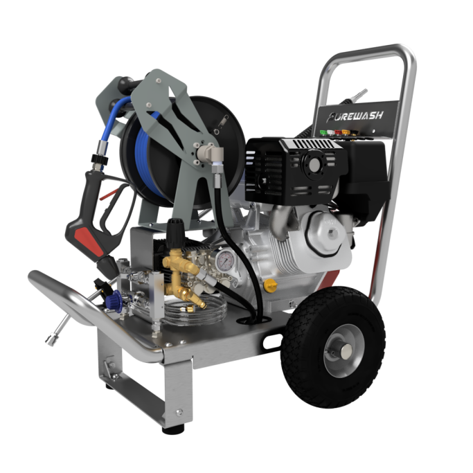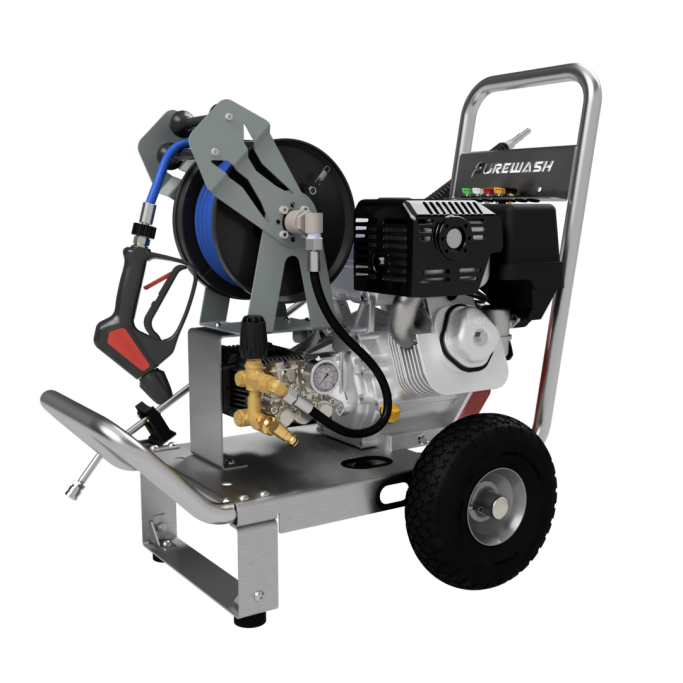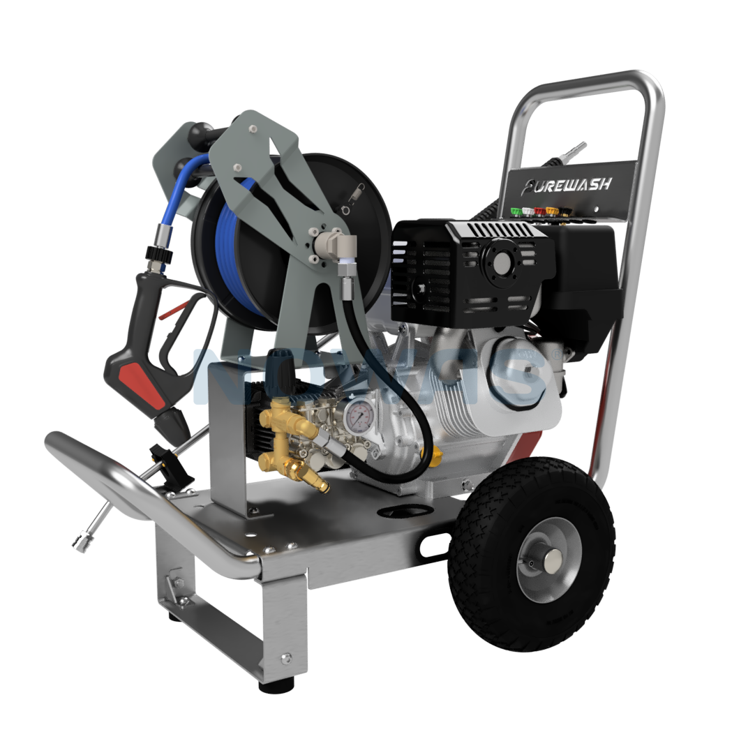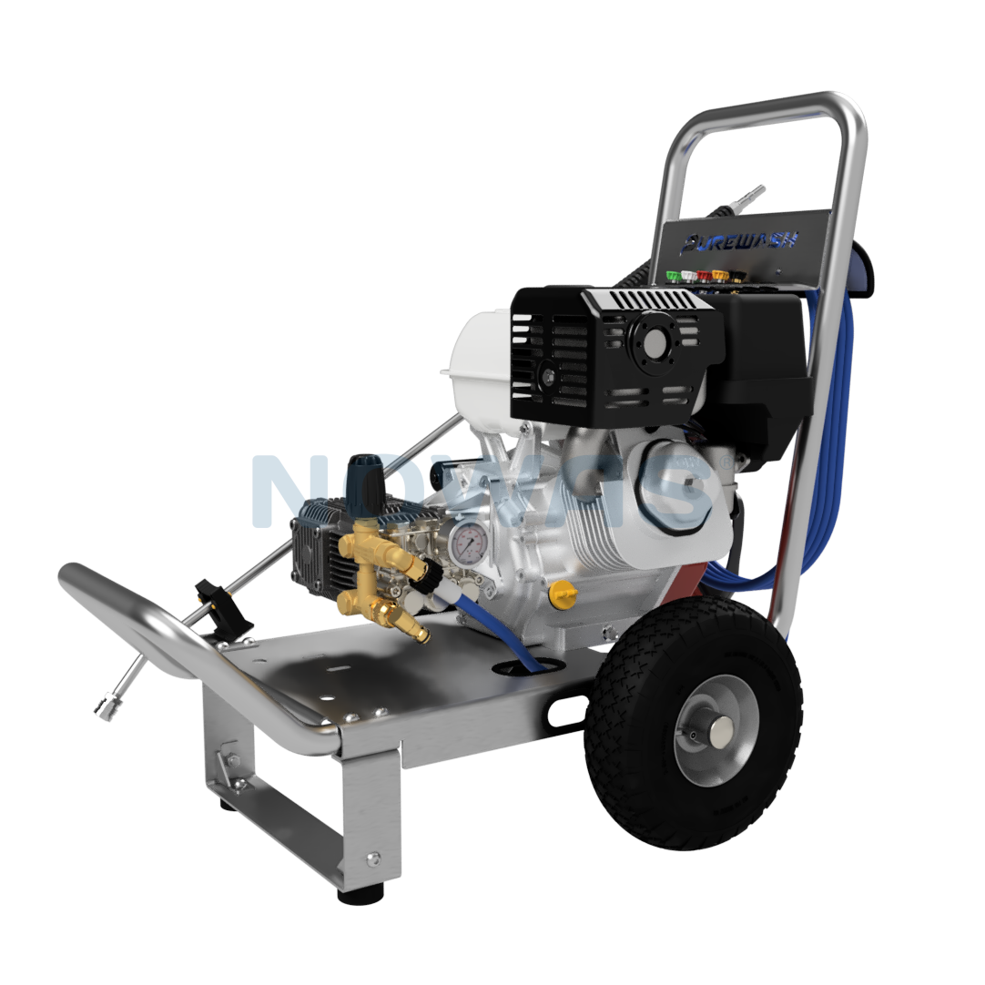 Kraftig benzindrevet højtryks trolley udviklet til professionel og industriel rengøring. Maskinen er udstyret med 4-takt motor med rekylstart og kan anvendes overalt, hvor der er adgang til vand – helt uden behov for elektrisk tilslutning. Den er opbygget på en solid trolley i rustfrit stål og kombinerer robuste benzinmotorer med en professionel Annovi Reverberi højtrykspumpe med keramiske stempler, hvilket sikrer høj driftssikkerhed, lang levetid og stabil ydelse ved krævende opgaver.