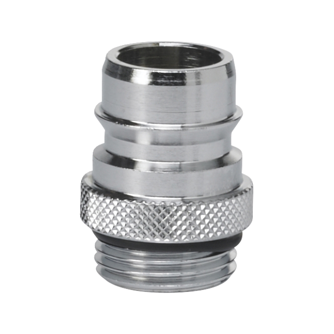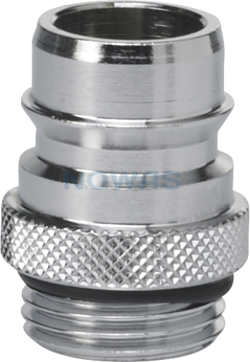 3/4" koblingsnippel (Q) med 1/2" gevind i forkromet messing.