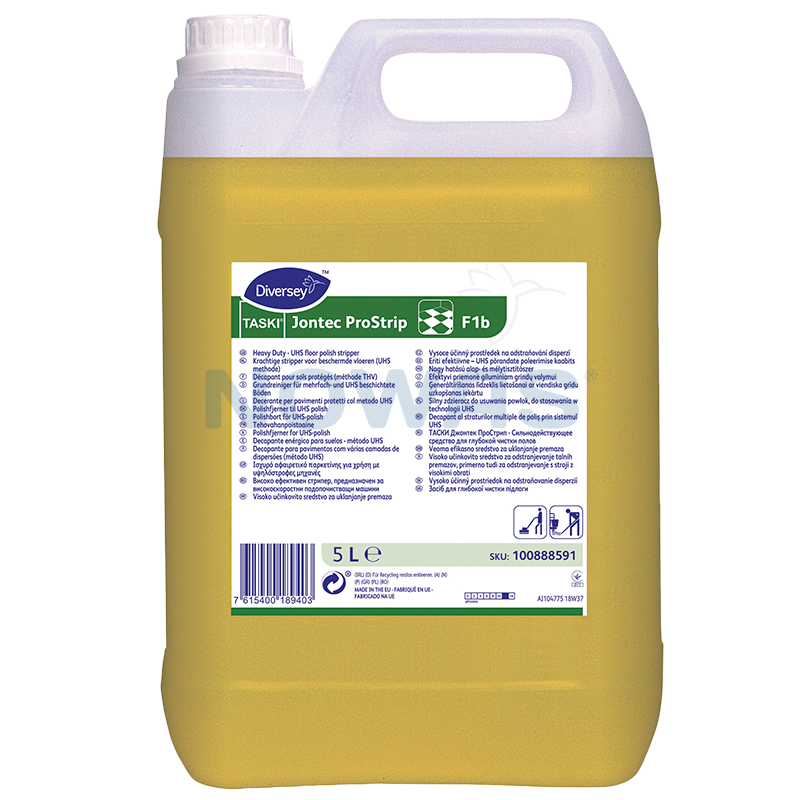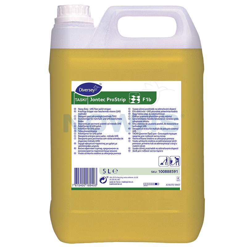 Jontec ProStrip er en hurtigvirkende og effektiv polishfjerner til fjernelse af UHS polish eller tykke lag af anden polish. ProStrip er en højeffektiv polishfjerner som udelukkende anvendes af fagfolk og altid med forsigtighed. Specielt velegnet til fjernelse af tykke lag polish. Jontec ProStrip må kun anvendes til gulve, der er alkaliresistente.