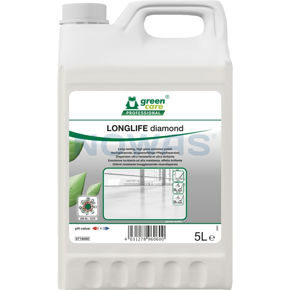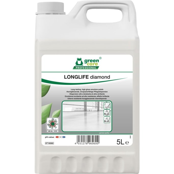 Tana LONGLIFE diamond er en højblank polish, ekstremt holdbar og skridsikker. Tana LONGLIFE Diamond polish er særdeles velegnet til PVC, linoeum og vinylgulve (med undtagelse af ubehandlet trægulve).