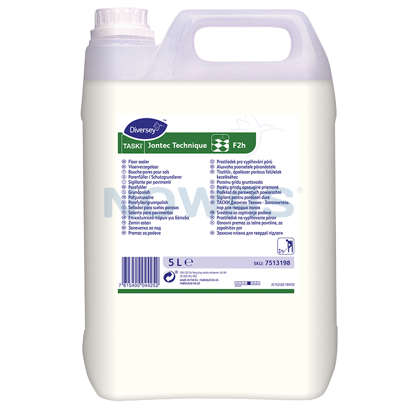Jontec Technique F2h er en semipermanent porefylder til behandling af de fleste porøse hårde gulvtyper. Produktets polymerer udfylder gulvets porer, hvilket reducerer forbruget af gulvpolish. Jontec Technique F2h sikrer gulvpolish en god vedhæftning og dermed har gulvpolishen længere holdbarhed.