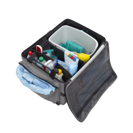 Trolleyen er ideel til rengørings- og desinfektionsopgaver der kræver mobilitet og fleksibilitet. Vognen er opdelt i rum så man nemt og overskueligt kan opbevare rengøringsmidler og rekvisitter. Trolleyen er kendetegnet ved effektivitet og kompakt design, der gør det muligt at udføre rengøringsopgaver hurtigt og diskret.