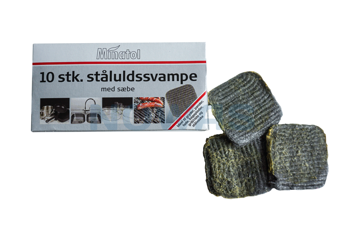 De fine metalfibre fjerner effektivt snavs, og da svampen allerede indeholder sæbe, behøver man ikke tilføre opvaskemiddel.