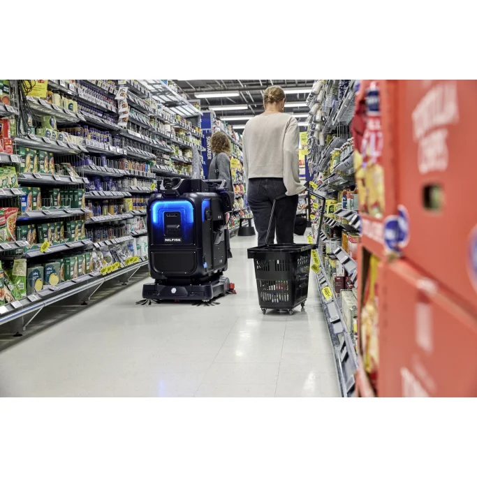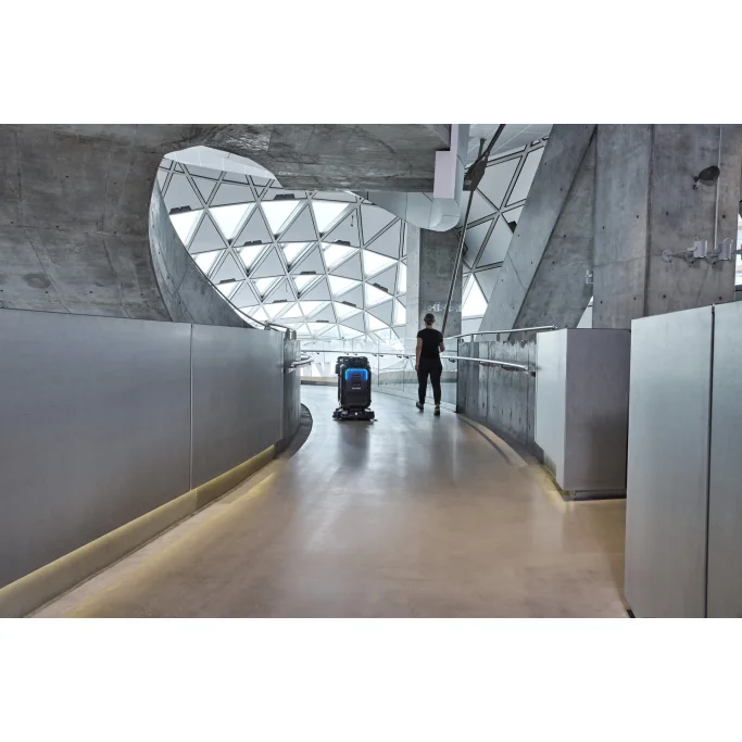 - Sikkerhedssensorer og intelligent programmering gør det muligt for rengøringsmaskinen at arbejde sikkert med kunder omkring sig i løbet af dagen