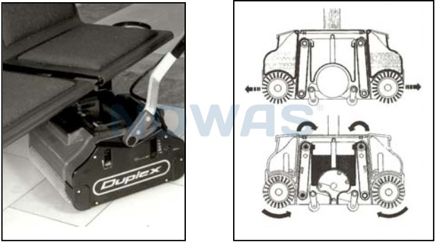Duplex gulvvaskemaskinen vasker helt ind i krogene i begge retninger, helt ud til fodlisterne, under borde, stole og lignende steder, hvor frihøjden er ned til 23 cm. Børstetrykket kan justeres efter den enkelte opgave og snavsevandsopsamlingen kan stoppes, hvis der skal skures.