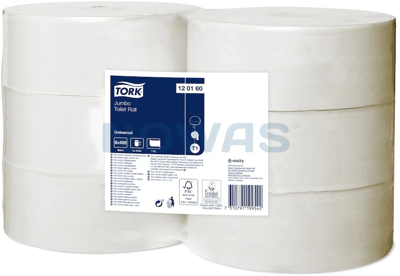 Tork Jumbosystemet sikrer effektiv vedligeholdelse og reducerede omkostninger, da det kan rumme meget mere toiletpapir end standardrullesystemer. Tork 1-lags Jumbo Toiletpapir Universal er en økonomisk løsning, der dækker de basale behov på toilettet og er perfekt til toiletter med høj brugerfrekvens.