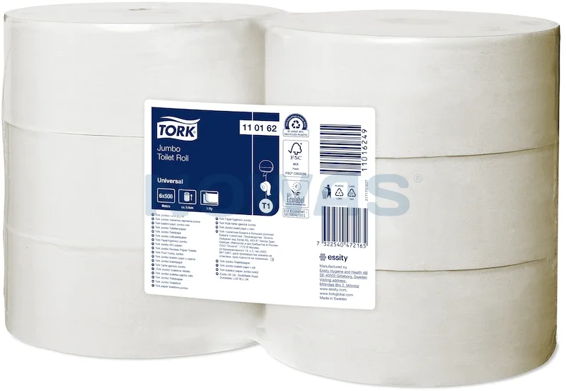 Tork Jumbo systemet sikrer effektiv vedligeholdelse og færre udgifter, da det kan rumme meget mere toiletpapir end almindelige toiletruller. Tork 1-lags Jumbo Toiletpapir Universal klarer de basale behov og er dermed økonomisk og perfekt til toiletter med høj brugertrafik.