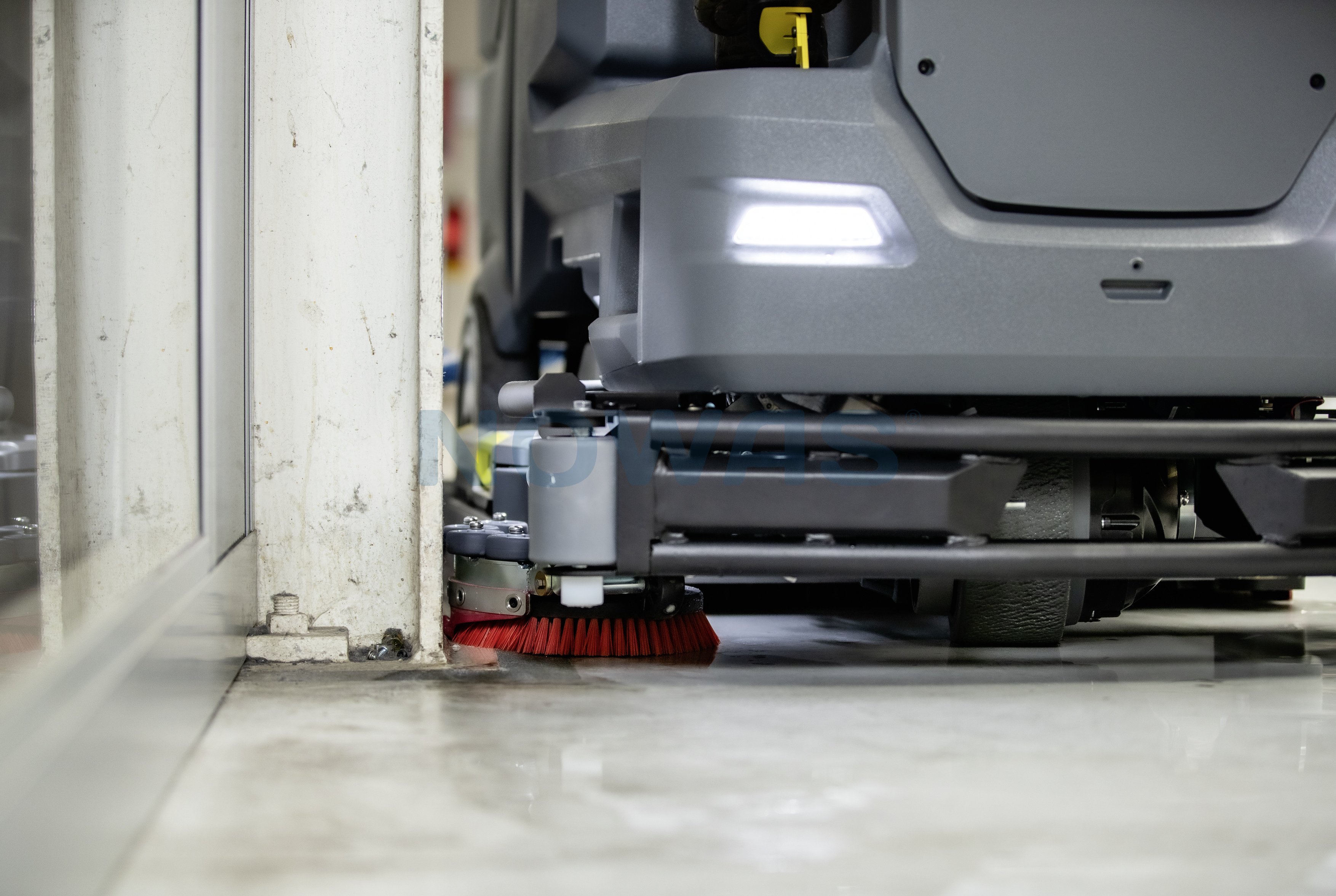 Den nye ride-on model B 110 R har to fuldstændigt reviderede komponenter, der er ekstremt vigtige, når det kommer til rengøringsresultatet: børstehovedet og squeegeen. Sammen sikrer de et afdæmpet og ressourcebesparende arbejde og er lavet af særligt robuste materialer. Effektiviteten øges yderligere ved hjælp af det ny-udviklede side-skrubbe-dæk. Med dette kan store arealer i virksomheder, lagerhaller, shopping centre, parkeringshuse og lufthavne blive rengjort hygiejnisk og bæredygtigt.