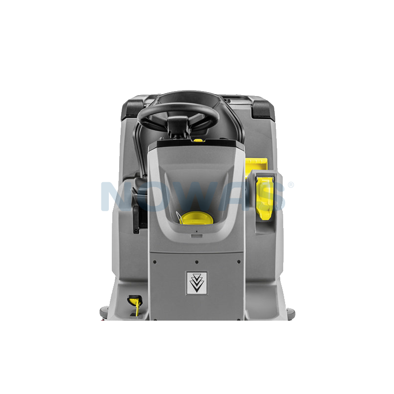 Kärcher ride-on gulvvasker B 110 R overbeviser på alle områder. Denne Kärchermaskine er drevet af et kraftigt 170 Ah-batteri, som nemt oplades via den indbyggede batterioplader, 2 skivebørster med en arbejdsbredde på 75 centimeter. Den hastighedsafhængige vanddosering og dosisrengøringssystemet sikrer høj rengøringskraft med samtidig lavt forbrug af vand og rengøringsmidler. Farvekodede betjeningselementer, EASY Operation-kontakten til valg af rengøringsprogram og det store farvedisplay på 30 sprog sikrer også meget enkel betjening. Autofyld-funktionen til tidsbesparende påfyldning af ferskvandstanken og tankskylningssystemet til hurtig rengøring af den snavsede vandtank er integreret for maksimal brugervenlighed. Og maskinen er udstyret med et højdejusterbart førersæde og synlige kørelys for forbedret arbejdskomfort og sikkerhed.