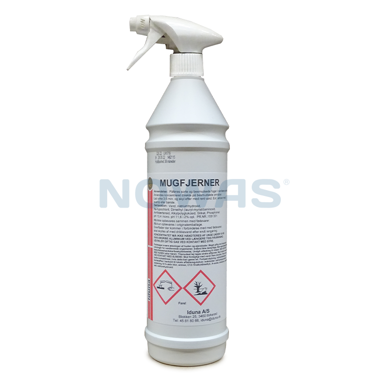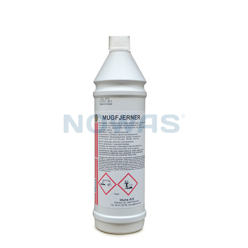 Mugfjerner virker bakterie- og svampedræbende, blegende, lugtfjernende og smudsløsende. Velegnet til anvendelse i vådområder på skoler, plejehjem, hospitaler, hoteller, sports- og svømmehaller m.m.
