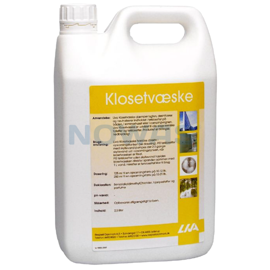 Liva Klosetvæske er en tørklosetvæske til brug i båden, campingvognen og sommerhuset.