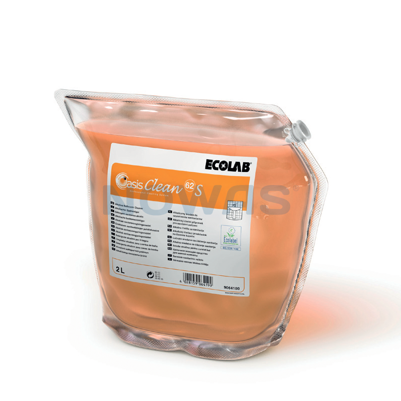 Oasis Clean 62 S er et koncentreret alkalisk sanitært rengøringsmiddel, der kan anvendes på marmor, og som fjerner kalkslør, sæbe, kropsfedt og snavs. Oasis Clean 62 S er beregnet til syrefølsomme overflader i sanitære områder. Oasis clean 62 S er tilsat en farveindikator og en frisk duft af parfume. Oasis Clean 62 S er en del af Ecolabs produktportefølje, som er miljømærket med EUblomsten som et økologisk godkendt produkt.