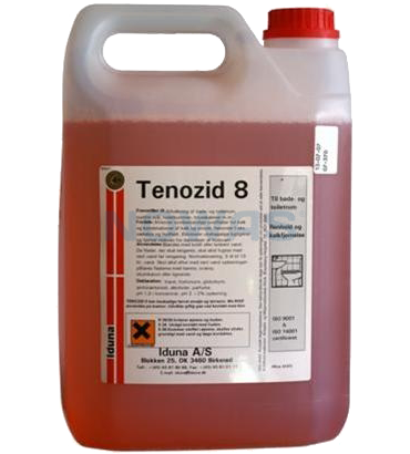 Kalkfjernende, bakteriedræbende rengøringsmiddelTenozid 8 er et universelt rengøringsmiddel som anbefales til rengøring i almindelighed med fokus på lettere kalkfjerning. Produktet anvendes til daglig renhold, desinfektion og kalkfjernelse i bade- og toiletrum, svømmehaller mv.
