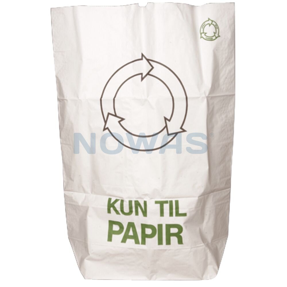 Hvide papirsække til indsamling af papiraffald. Affaldssække i vådstærkt papir.