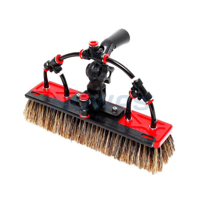 Denne komplette vandbørste bliver leveret med 4 x rundstråledyser, rinsebar og drejbar svanehals. Rinsebaren giver et præcist men samtidig forsigtigt skyl på glasset. Med rinsebar på din børste opnår du et meget bedre slutresultat, det præcise skyl på vinduet gør det nemmere at fjerne skidt og snavs. Denne rinsebar sidder øverst på børsten og udsender stråler direkte på ruden, så kraften fra vandet gør det meste af arbejdet.