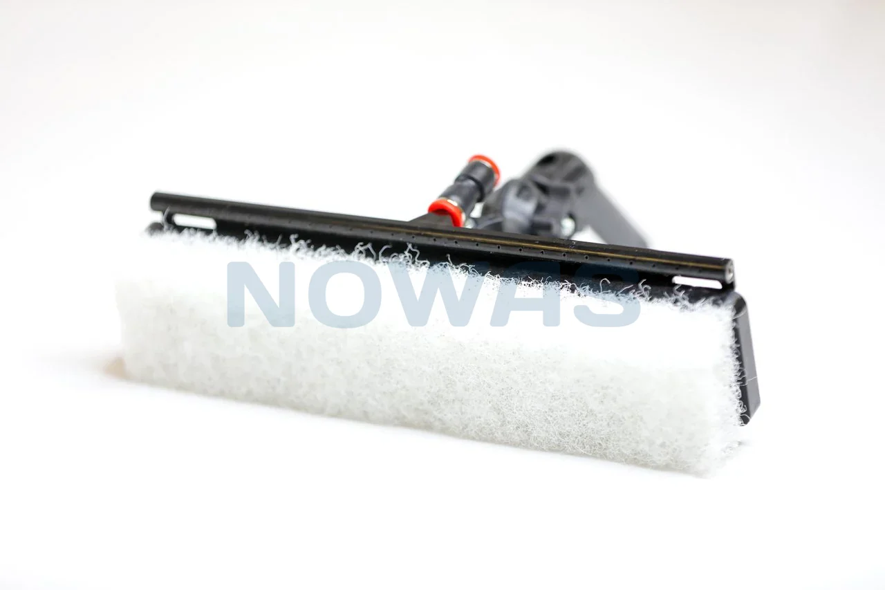 Den øverste skyllestang giver overrinse på vinduet og skyller hurtigt løsnet snavs væk fra rengøringsområdet. Dette muliggør en hurtig skylning med minimal indsats, hvilket sparer din krop mod for tidlig træthed. Alpha skrubberen bliver leveret komplet med overrinse skyllestang, svanehals og 10 udskiftningspads, hvilket giver det en lang levetid, inden der skal udskiftes. Tucker Alpha scrubberen findes i længderne 27 og 43 cm.
