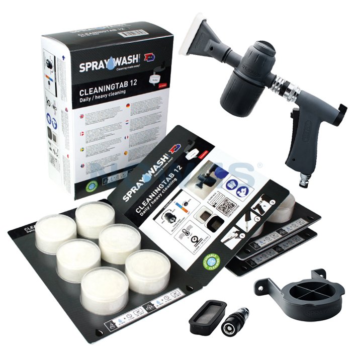i-spraywash er to til tre gange lettere end de fleste andre flydende rengøringssystemer, hvilket sparer vægt på operatørens håndled, arm, skulder og ryg. De koncentrerede tabletter sørger for, at du aldrig over- eller underdoserer.