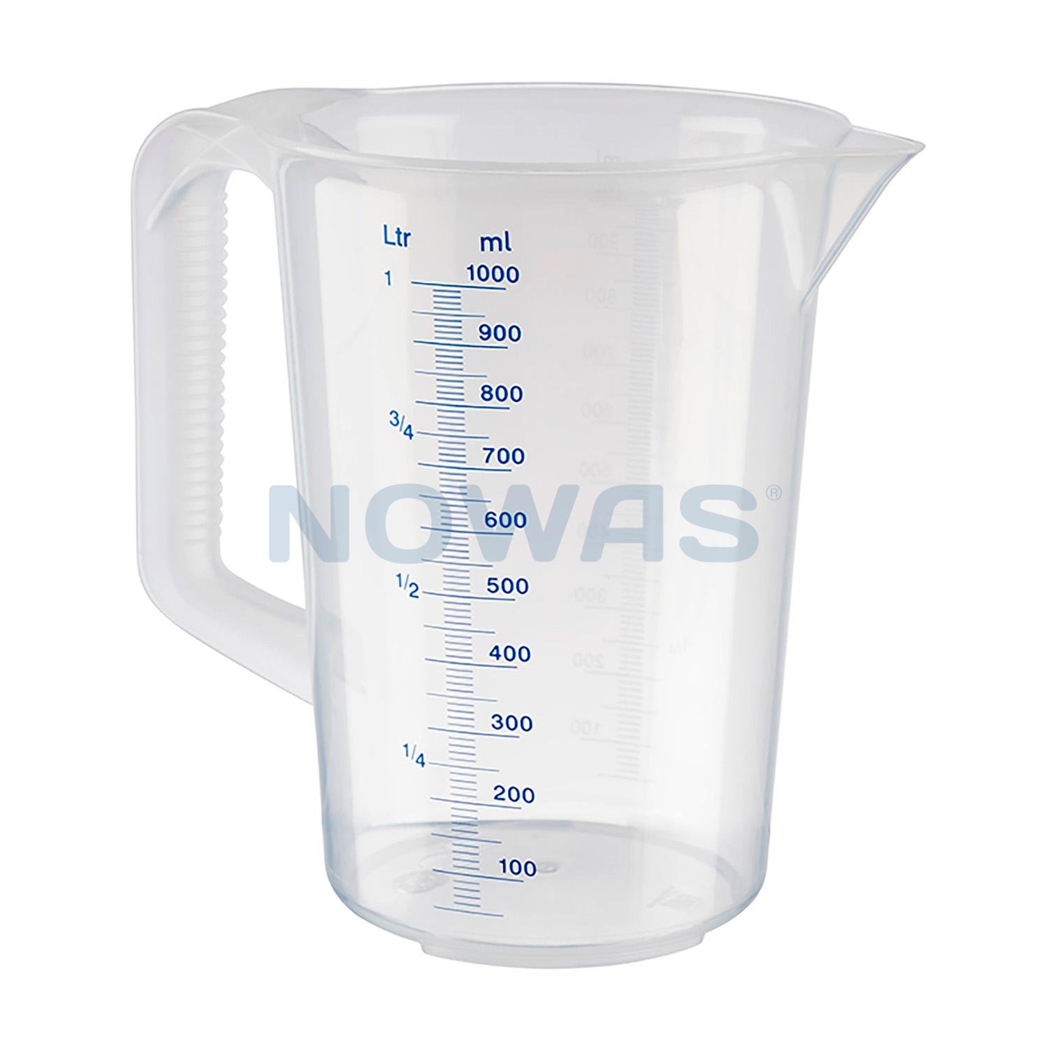 Målekande på 1 liter med hank og angivelse af Ml og Liter på siden. Den perfekte målekande til det professionelle køkken, hvor der er behov for en slagfast og holdbar løsning.