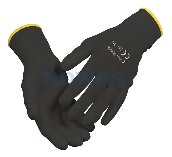 Sort nylonbelagt montagehandske Odin Work PU er en fleksibel handske med super pasform og god gribeevne.