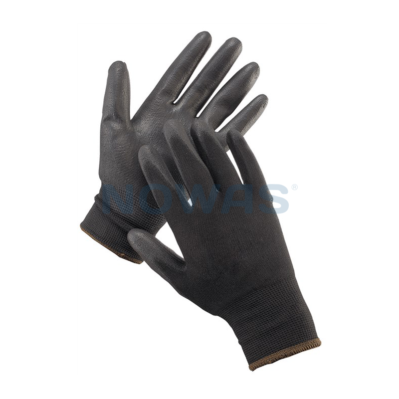 Bunting Light arbejdshandske er en sømløs handske med ribkrave, handsken er belagt med polyurethan, og har en sort glat overflade.