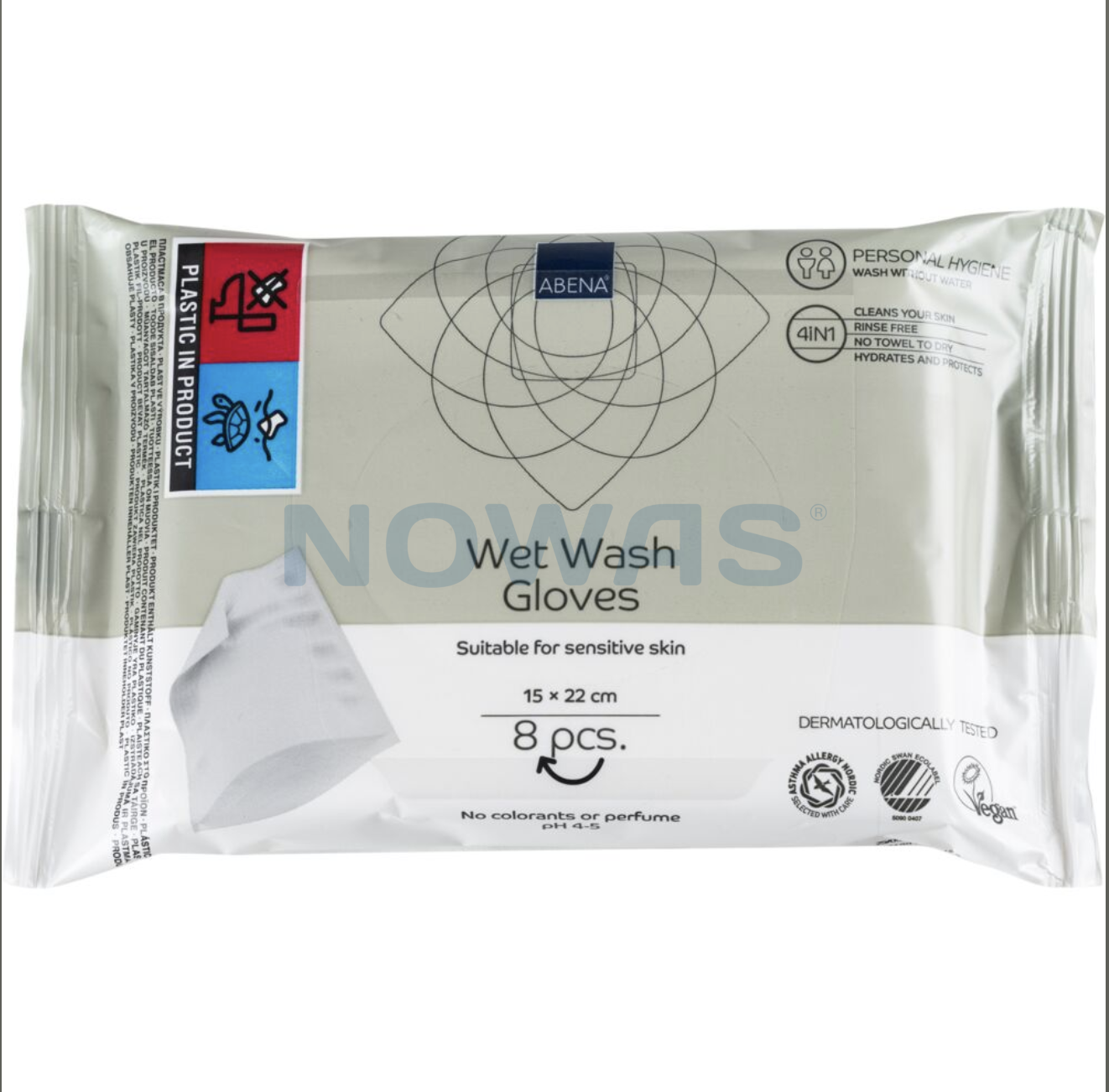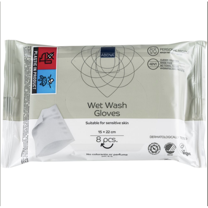 Denne pakke med vaskehandsker indeholder 8 stk. vaskehandsker i størrelsen 15x22 cm. Engangs vaskehandsken er uden parfume og handsken har 4 funktioner i 1 vaskeklud, handsken vasker, renser, tørrer og beskytter nemlig huden. Vådvaske handsken er til personlig pleje, den giver en nænsom og blid og dybdegående rensning af huden, handsken er både rensende og plejende på samme tid.