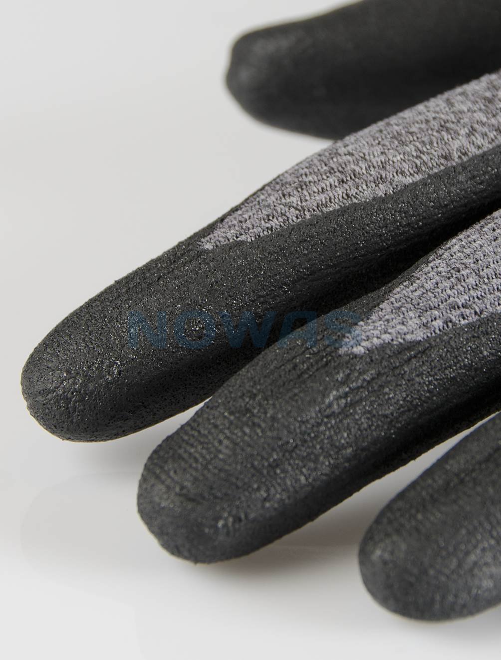 Blød og åndbar, strikket syntetisk handske, 15 gg, dyppet på håndfladen med nitrilskum for god smidighed og bedre greb. Velegnet til lettere opgaver i tørre miljøer. Fås i mørkegrå og sort, som skjuler snavs for maksimal produktlevetid. Med fødevaregodkendelse (ikke til fed mad) og Oeko-Tex certifikat.
