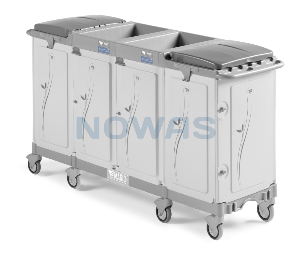 - Hygiejnisk hotelvogn med paneler der adskiller genbrugsvarer, affald, lagerprodukter og rengøringsmidler fra hinanden