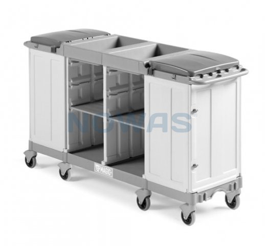 ? Hygiejnisk hotelvogn med paneler der adskiller genbrugsvarer, affald, lagerprodukter og rengøringsmidler fra hinanden