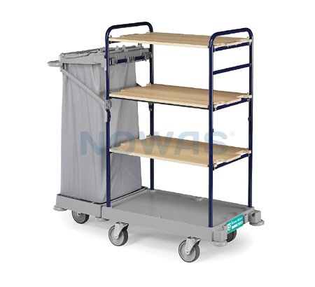 Med stødbande, der forhindrer mærker på fodlister o.lign. En effektiv servicevogn til transport af rent og beskidt linned.