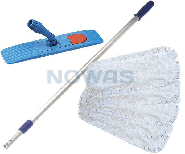 Komplet moppesæt med klapbar moppefremfører, teleskopskaft og 5 stk. fladmopper med lommer.