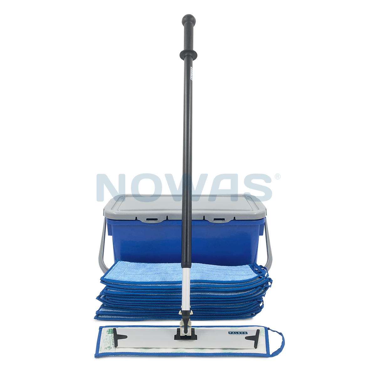 Komplet moppesæt med skaft, 15 stk. Micro Vision mopper 40 cm, spand og fremfører