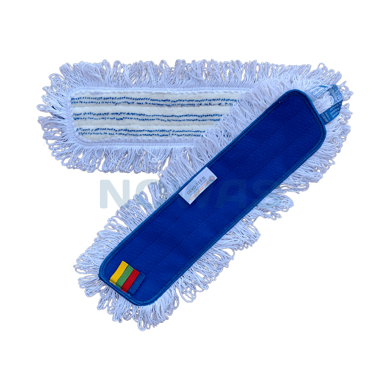 Microfibermoppe med bagside af velcro og påsyede løkker i kanten.