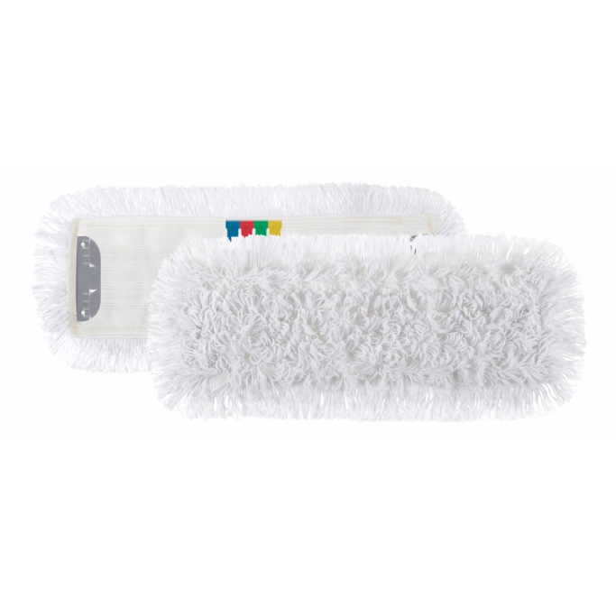 Denne moppe består af polyester og har to kliklåse på bagside der passer til Uni System moppefremfører. Uni System polyester moppe fjerner effektivt skidt og snavs. Uni System gør det muligt at rengøre hjørner uden at redskaberne kommer i kontakt med eks. vægge.