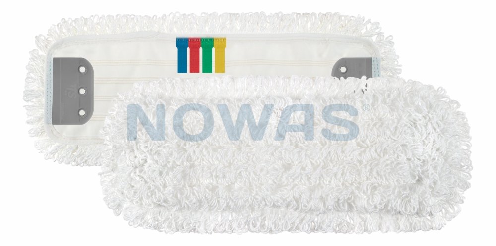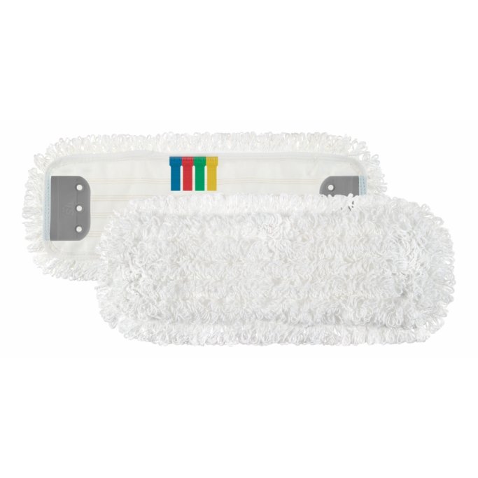 Moppe med en polyester-ryg. Bagside består af 2 flapper med 3 huller, der er designet til Wet System Moppefremfører - Se kompatible produkter.