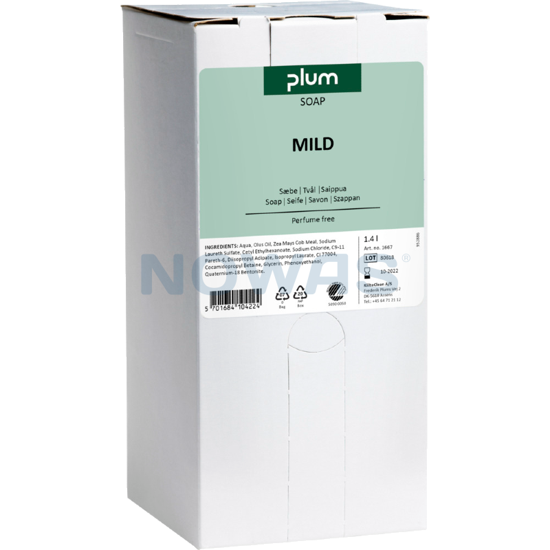 Plum mild cremesæbe er en ekstra mild og meget hudvenlig håndsæbe uden farve og parfume. Specielt velegnet til intimvask og den meget hyppige håndvask i forbindelse med f.eks. patientpleje, rengøring o.lign. En håndsæbe hvor du tager hensyn til huden og miljøet.