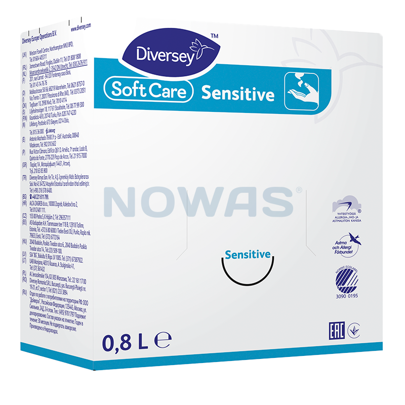 Soft Care Sensitive er en mild håndsæbe, specielt udviklet til følsom hud. Sæben indeholder ikke parfume, hvilket gør den velegnet til brug i fødevaresektoren. Sammensætningen af milde tensider gør den velegnet til hyppig brug af personer med følsom hud. Soft Care Sensitive indeholder en blanding af milde overfladeaktive stoffer, fugtgivere, salte (fortykkere) og konserveringsmidler.