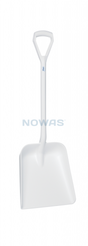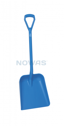 Stabil skovl med kort skaft og stort, dybt blad. En slagfast skovl, der er velegnet til brug i forbindelse med levnedsmidler. Er stabil og meget nyttig i forbindelse med arbejde på/fra gulvet. Denne skovl er velegnet til brug i fødevareindustrien.