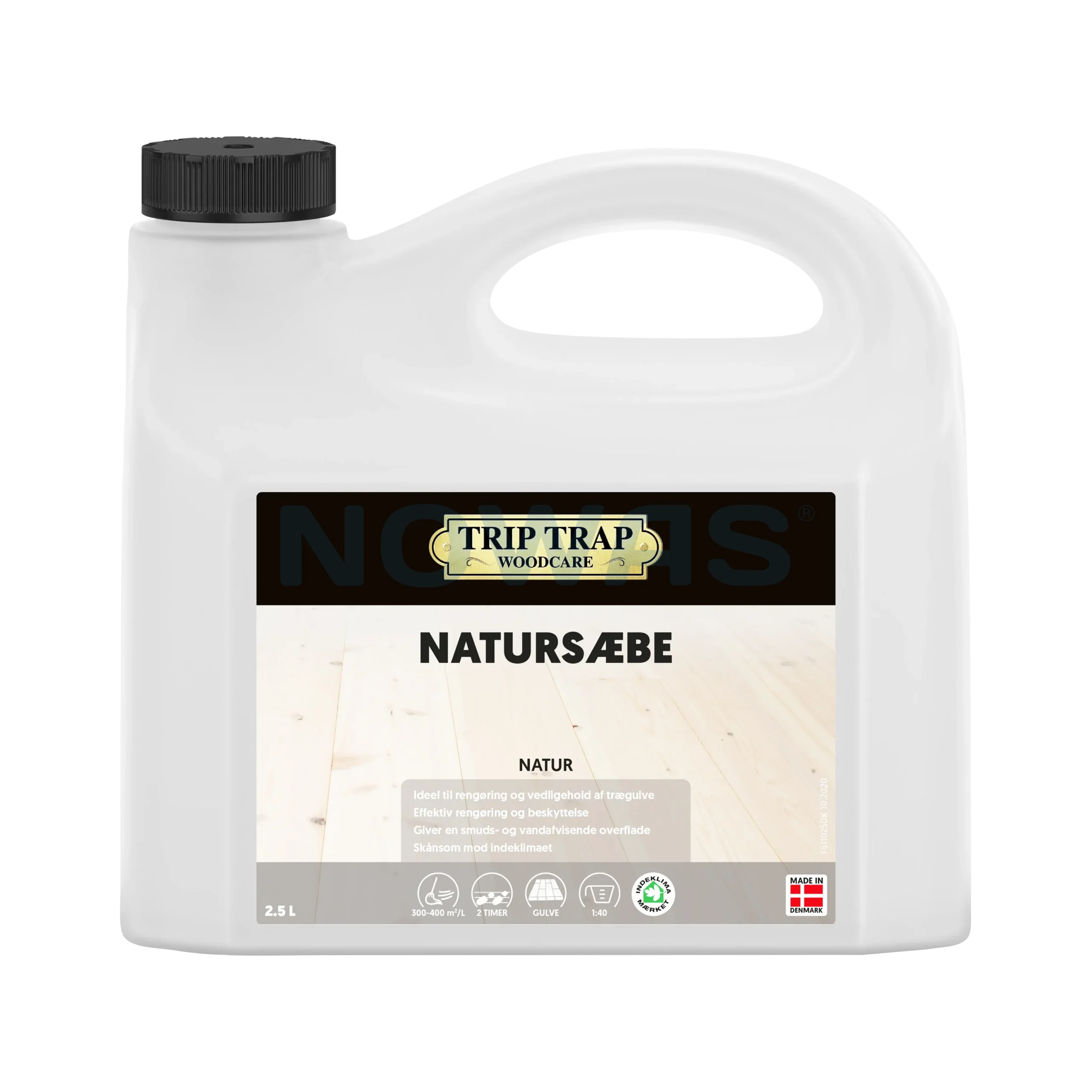 Trip Trap Natursæbe er en specielt udviklet kvalitetssæbe til rengøring og vedligeholdelse af alle typer af trægulve og andre træoverflader, trapper mv. - dog ikke til lakerede gulve, her anbefales Trip Trap Laksæbe.