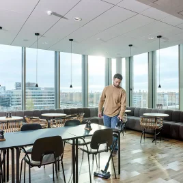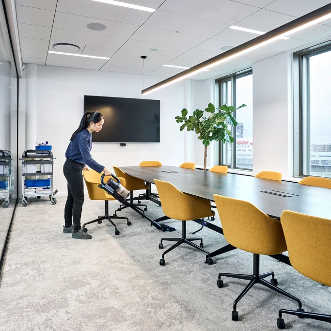 Hils på VU200, Nilfisk's nye ledningsfri skaftstøvsuger, der giver dig mulighed for at rengøre komfortabelt og hurtigt uden at afbryde din arbejdsgang.