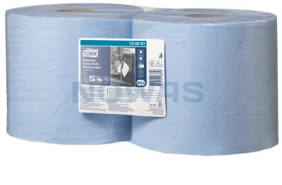 Tork 130081 er et kraftigt, fnugfrit og slidstærkt, blåt aftørringspapir til aftørring af olie, fedt, smuds og skærevæsker.