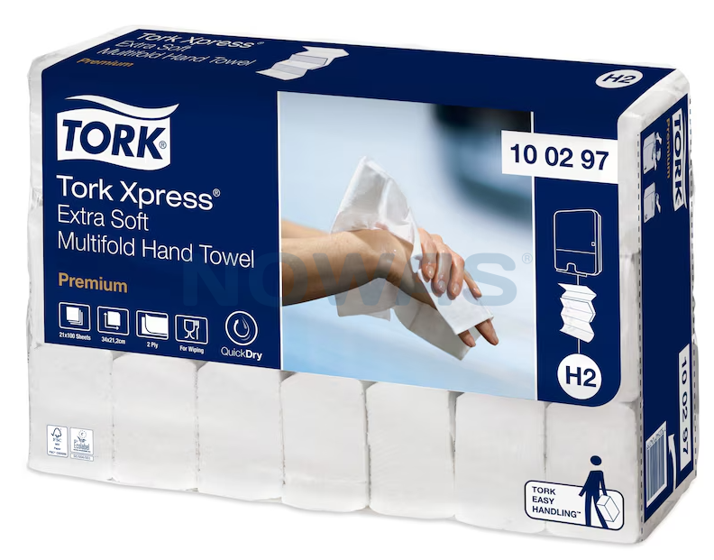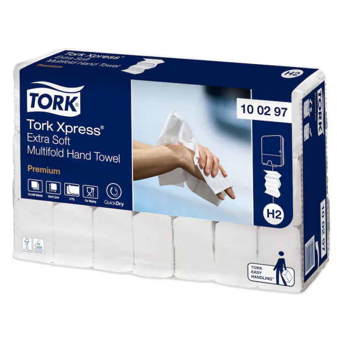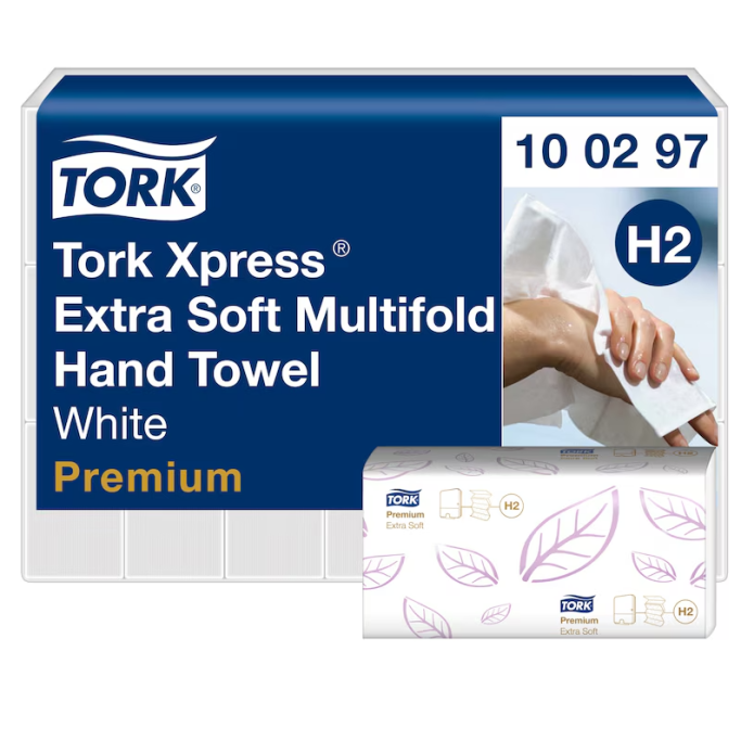 Giv dine gæster den bedste brugeroplevelse og høj komfort med de store, bløde Tork Xpress Premium Håndklædeark, der skåner hænderne og føles meget behagelige. Disse håndklæder passer i Tork Xpress(R) Dispenser Multifold Håndklædeark til toiletter med en middel brugerfrekvens. Den passer på steder hvor pladsen er trang og er bekvem og hygiejnisk for dine gæster.