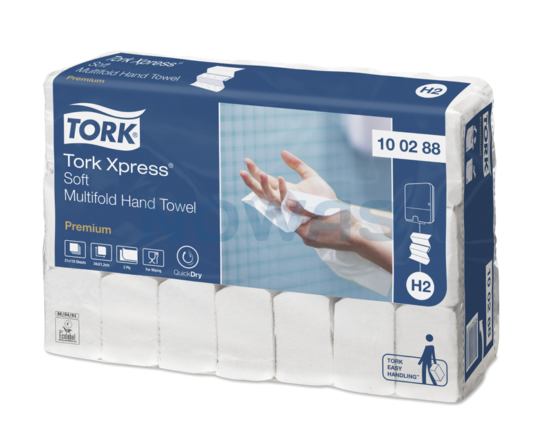Giv din gæster uovertruffen håndaftørring og komfort med de store, bløde Tork Xpress Soft Premium Multifold Håndklædeark, som skåner hænderne og føles behagelige. Disse håndklædeark passer i Tork Xpress Dispenser Multifold Håndklædeark til toiletter med middel brugerfrekvens. Den passer på steder, hvor pladsen er trang, og er bekvem og hygiejnisk for dine gæster.
