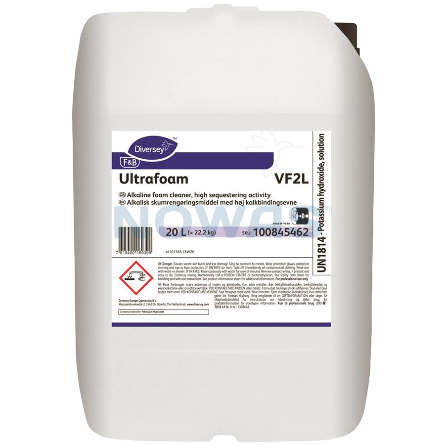Ultrafoam VF2L Skumrengøring fra Diversey, er et alkalisk rengøringsmiddel, som er velegnet til rengøring i fødevarevirksomheder.