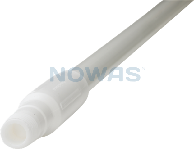 Glasfiberskaft med gevind. Afrundet top og velegnet til ophæng. Dette glasfiberskaft er designet med en ergonomisk god gribeflade. Udstyret med et isolerende "plastikovertræk", som gør skaftet velegnet til brug i kolde områder. Velegnet sammen med syre- og klorholdige rengøringsmidler.