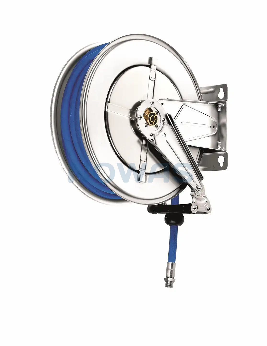 Automatisk slangeopruller, hygiejnisk slange, rustfri, til luft/vand, 10 m, 20 bar