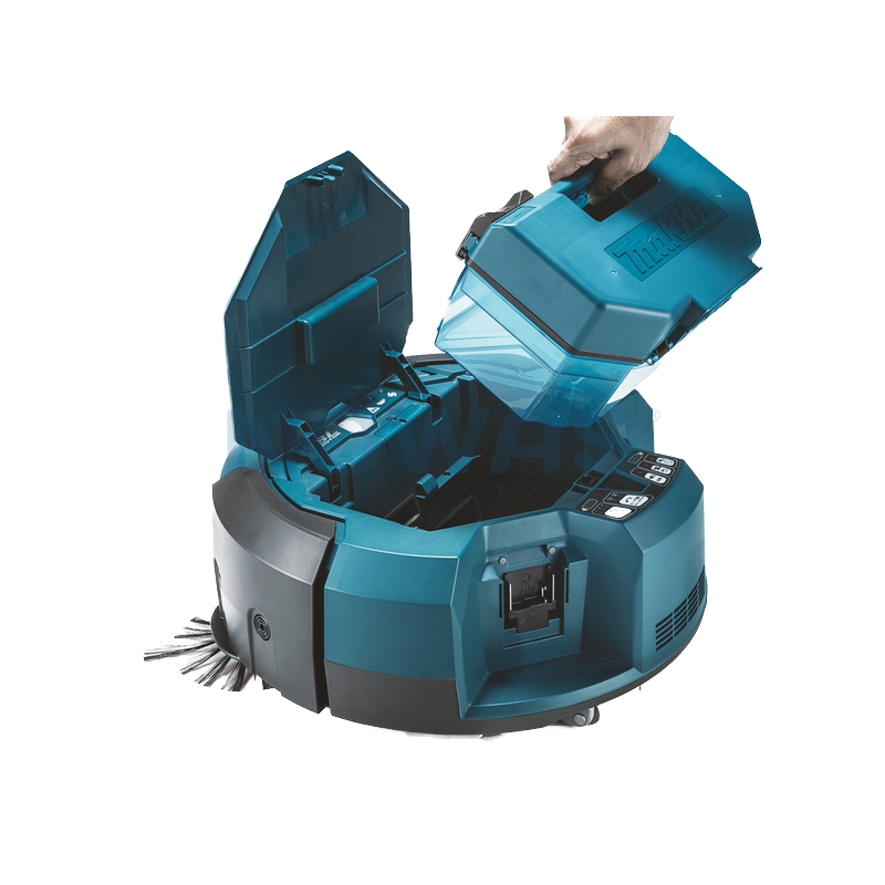 Makitas robotstøvsuger klarer rengøringen for dig, når personalet er gået. Arealet, der skal gøres rent, kan afgrænses, og ultralyds- og stødfangersensorer sørger for, at maskinen ikke støder ind i forhindringer eller falder ned ad trapper. Makita robotstøvsugeren har to bevægelsestilstande: mønstertilstand til åbne arealer og tilfældig tilstand til områder med forhindringer.